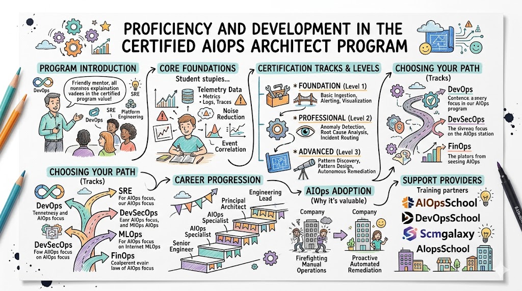 Modern infrastructure demands more than manual intervention and basic automation to maintain uptime. Consequently, the Certified AIOps Architect program bridges the gap between traditional operations and intelligent, data-driven management. This guide targets seasoned engineers and ambitious managers who want to integrate machine learning into their observability stacks at AIOpsSchool. Understanding these advanced workflows helps professionals make better career decisions while navigating the complexities of cloud-native and platform engineering environments.